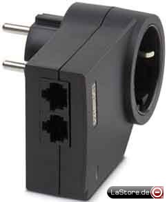 Steckdosenadapter (Schuko gem. VDE) mit Überspannungsschutz für Endgeräte mit ISDN-Schnittstelle. Signalleitungsanschluss am Zwischenstecker: Eingangs-/Ausgangsbuchse RJ45. Schutzschaltung für Stromversorgung: Varistor-Gasableiter-Kombination mit thermischer Überwachung, bei Überlastung selbständige Trennung der Schaltung vom Netz und optische Defektmeldung durch Ausschaltung der Betriebsanzeige. Schutzschaltung für Signalschnittstelle: Feinschutz zwischen den Signaladern sowie leistungsstarker Grobschutz zwischen Signaladern und Erde. Geeignet für ISDN-Anlagen/-Endgeräte und Computer. Kindersicherung als zusätzlicher Berührungsschutz. Gehäusefarbe: schwarz. Optionales Zubehör: ISDN-Anschlussleitung 1,5 m