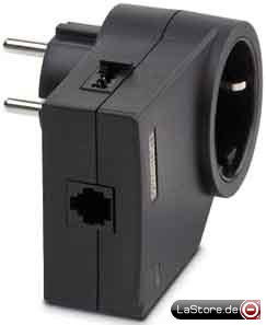Steckdosenadapter (Schuko gem. VDE) mit Überspannungsschutz für Endgeräte mit TAE-Schnittstelle. Signalleitungsanschluss am Zwischenstecker: Eingangsbuchse Modular Jack, Ausgangsbuchse TAE. Schutzschaltung für Stromversorgung: Varistor-Gasableiter-Kombination mit thermischer Überwachung, bei Überlastung selbständige Trennung der Schaltung vom Netz und optische Defektmeldung durch Ausschaltung der Betriebsanzeige. Schutzschaltung für Signalschnittstelle: Feinschutz zwischen den Signaladern sowie leistungsstarker Grobschutz zwischen Signaladern und Erde. Geeignet für NTBA und Telekommunikations-Endgeräte. Kindersicherung als zusätzlicher Berührungsschutz. Gehäusefarbe: schwarz. Optionales Zubehör: TAE-Anschlussleitung 1,5 m