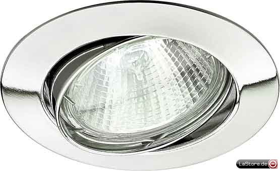 schwenkbarer Hochvolt-Einbaustrahler, Material Aluminiumguß, Bestückung 1x230V/GU10,ES63-max.75W, Montage ohne Transformator, Schutzart (IP) 20, Einbautiefe 125mm, Außendurchmesser 102mm, Deckenausschnitt 90mm, Farbvariante mattchrom