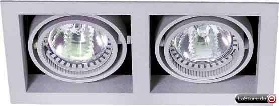 Leuchtmittel: NV-HalogenlampeGeeignet für Leuchtmittelanzahl: 2Lampenleistung: 50 WLänge: 108 mmBreite: 208 mmFarbvariante: aluminium matt