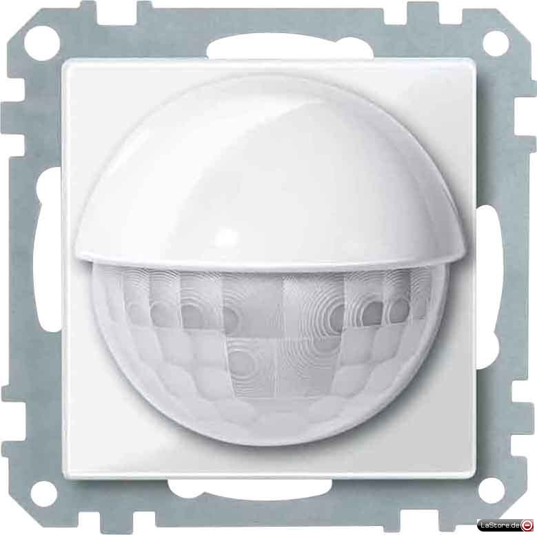 Bewegungsmelder für den Innenbereich. Bei Erfassen einer Bewegung wird ein durch die Programmierung definiertes Datentelegramm gesendet. Mit integriertem Busankoppler. Softwarefunktionen KNX Fünf Bewegungsblöcke: Bis zu vier Funktionen können je Block ausgelöst werden. Telegramme: 1 Bit, 1 Byte, 2 Byte. Normalbetrieb, Master, Slave, Sicherheitspause, Sperrfunktion. Empfindlichkeit, Helligkeit und Treppenlichtzeit lassen sich über die ETS oder das Potentiometer einstellen. Lernbare Treppenlichtzeit. Erfassungswinkel: 180 Grad. Reichweite: 8 m (bei einer Montagehöhe von 1,1 m). Anzahl der Ebenen: 1, Anzahl der Zonen: 14, Empfindlichkeit: Stufenlos einstellbar (ETS oder Potentiometer), Lichtfühler: Stufenlos einstellbar von ca. 10 bis 2000 Lux (ETS oder Potentiometer), Zeit: Stufig einstellbar von 1 s bis 8 min (Potentiometer) oder einstellbar von 1 s bis 255 Stunden (ETS), EG-Richtlinien: Niederspannungsrichtlinie 73/23/EWG und EMV-Richtlinie 89/336/EWG, Lieferumfang: Mit Busanschlussklemme und Tragplatte.