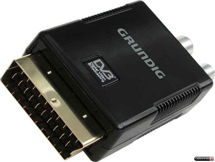 Digital terrestrischer Miniatur-Receiver zum Empfang von unverschlüsselten terrestrischen Programmen, hohe Eingangsempfindlichkeit für besten Empfang, ständige dynamische Auswertung der Programm begleitenden Daten für den Empfang von Regionalprogrammen, EPG, Teletext-Decoder mit 1000-Seiten-Speicher, direkt in die Scartbuchse des TVs einzustecken, entspricht der NorDig Spezifikation, Abmessungen (BxHxT): ca. 9,5x5,3x2,35 cm, Gewicht: ca. 0,070 kg