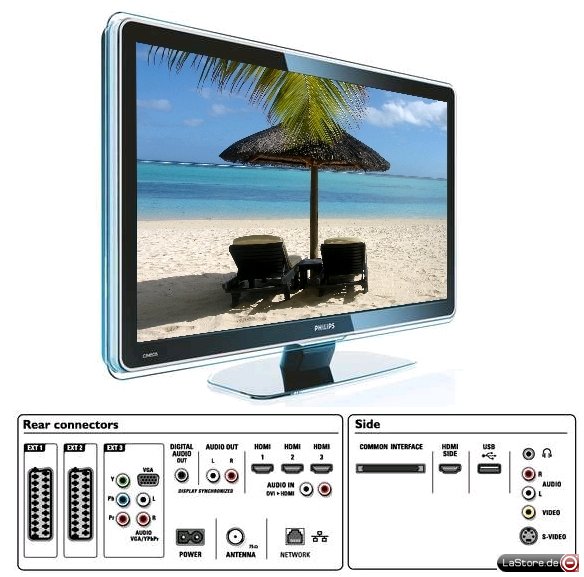 - EasyLink: Einfache Steuerung des Fernsehgeräts und angeschlossener Geräte über HDMI CEC