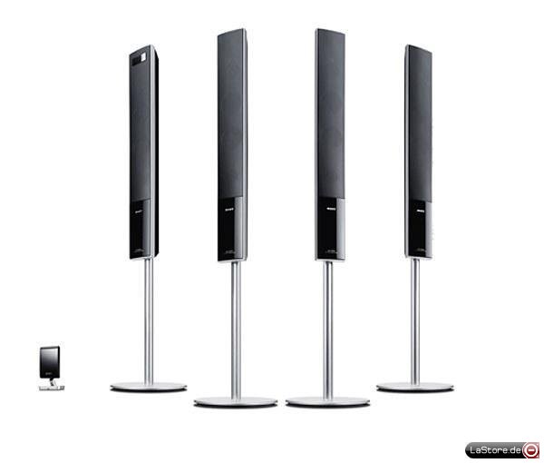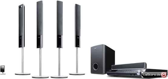 Heimkino mit Center- und 4 Säulenlautsprechern (2 kabellose Rücklautsprecher).