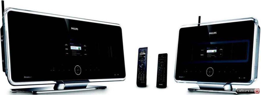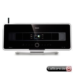 Wireless Music Center + Station, kabelloses Streaming zwischen Center, Konsole(n) und PC, 80 GB Festplatte, CD- und USB-Direktwiedergabe, Internet-Radiosender, "My Room, My Music" für die Wiedergabe aller Sender, Music Broadcast, Music Follows Me, 80 W RMS/Center, 30 W RMS/Konsole mit Super Sound Panel, Erweiterung des Systems durch Hinzufügen von bis zu 5 WiFi-Stationen