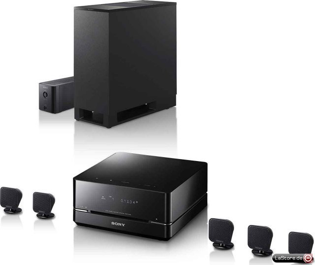 - 5 Lautsprecher in Golfballgröße bieten 450 W raumfüllenden digitalen 5.1 Surround Sound und der Subwoofer noch einmal 100 W