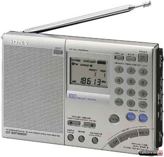 Ausführung Weltempfänger, Anzeigeart digital, Wellenbereiche UKW/MW/LW/KW, Anzahl der Speicherplätze 100, Farbe Silber