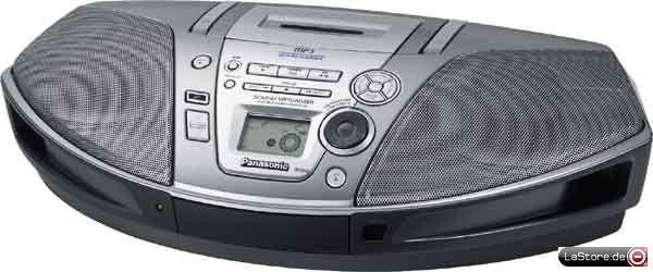 Die mobile MP3-Beatbox! Der ES23EG-S kann MP3-CDs mit 9 W Ausgangsleistung (RMS) abspielen. Tipptastensteuerung, CD-R/RW-Wiedergabe, CD-Synchrostart sind nur einige seiner bedienfreundlichen Features. Der PLL-Tuner für UKW/MW hat 32 Stationsspeichern und die Anzeigen werden auf einem LC-Display dargestellt.