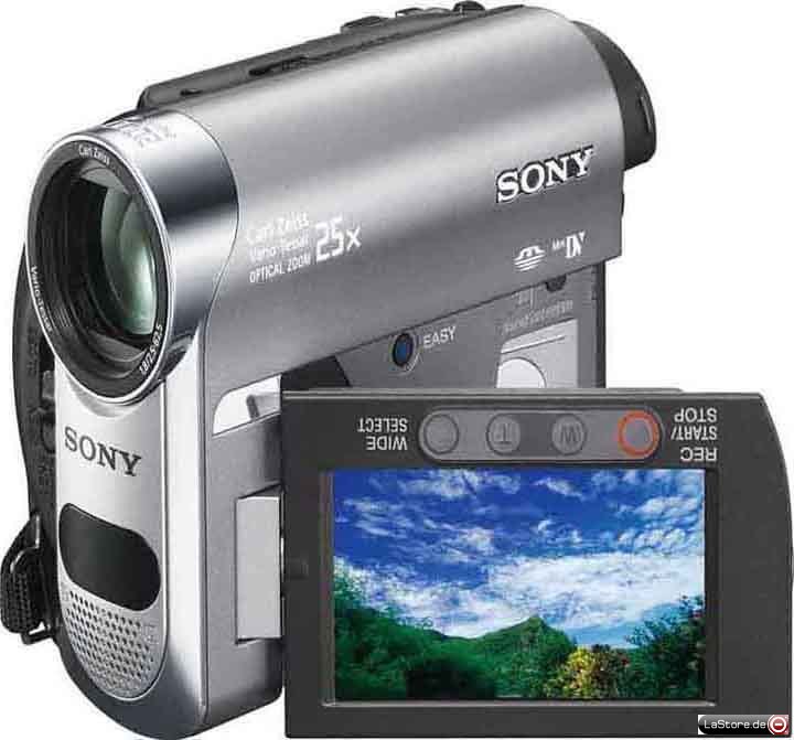 MiniDV-Handycam mit Carl Zeiss Vario Tessar Objektiv, 30 mm, Easy Handycam-Funktion, Super SteadyShot, 2,7 Zoll Breitbild-LCD-Touchscreen, zusätzl. Start-/Stopp- und Zoom-Tasten am LCD-Bildschirmrahmen, STAMINA bis zu 10 Std. (mit optionalem Akku), DV-Verbindung (i.LINK, Eingang/Ausgang), integriertes Stereo-Mikrofon, integrierter Lautsprecher, NightShot Plus, Auto Slow Shutter, Colour Slow Shutter, Hintergrundbeleuchtungsausgleich, Audio-/Videoausgang, S-Video-Ausgang, PictBridge kompatibel, inkl. Zubehör (Netzteil, Multi-AV-Kabel, USB-Kabel, USB-Treiber, Picture Motion Browser, Fernbedienung), Abmessungen (BxHxT): 63x85x114 mm