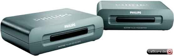 Wireless TV-Link, Video-Wiedergabe auf zweitem Fernseher, funktioniert u.a. mit DVD+RWs/DVDs/Videorecordern/Set-Top-Boxen, Reichweite im Haus: 15-30 m, Reichweite im Freien: 100 m, Maße (BxHxT): 144x41x91 mm (Sender/Empfänger)
