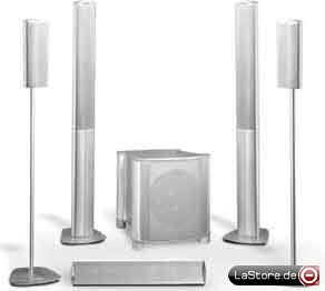 Ausführung Surround-System, Anzahl der Lautsprecherkomponenten 5, Subwoofer aktiv, Musikleistung Frontlautsprecher 150 W, Sinusleistung Frontlautsprecher 100 W, Musikleistung Rearlautsprecher 100 W, Sinusleistung Rearlautsprecher 60 W, Musikleistung Centerlautsprecher 150 W, Sinusleistung Centerlautsprecher 100 W, Musikleistung Subwoofer 220 W, Sinusleistung Subwoofer 150 W, Farbe Silber