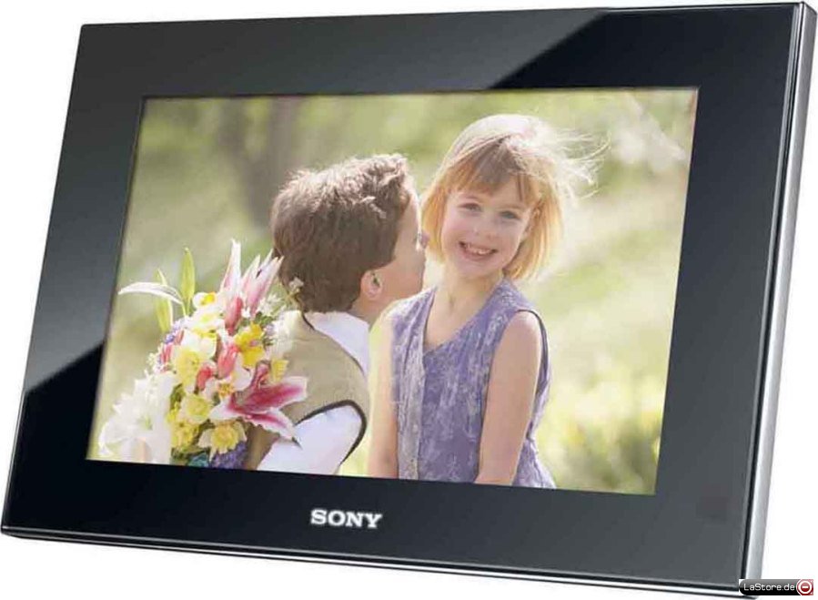 Digitaler Bilderrahmen, 9" (22,8 cm) Clear Photo LCD, ECO-Funktion, autom. Bildausrichtung bei Hoch- oder Querformat-Aufstellung, Gesichtserkennung, analoge Uhrzeit- und/oder Kalenderanzeige alternativ zur Fotoansicht wählbar, Auto Touch-up, BIONZ-Prozessor, 512 MB interner Speicher, HDMI-Ausgang, BRAVIA Sync, Farbe: Schwarz