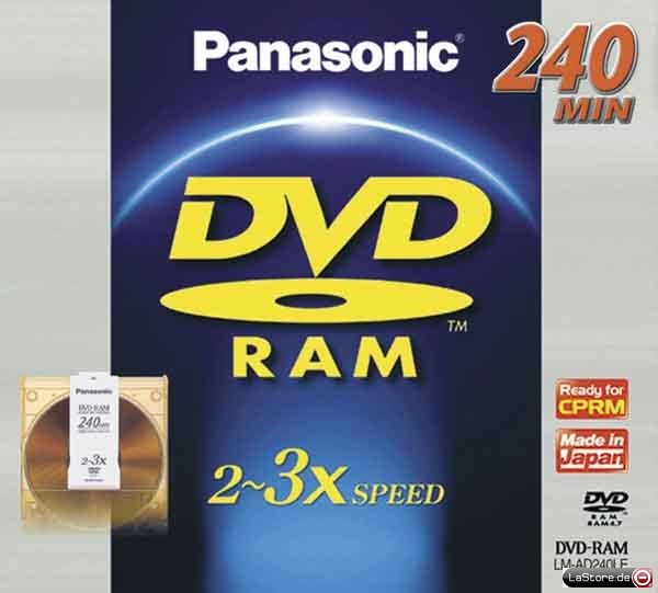 DVD-RAM (Audio/Video), High Speed: 3-fache Brenngeschwindigkeit, in Cartridge (entfernbar), formatiert, bis zu 100000 mal wiederbeschreibbar