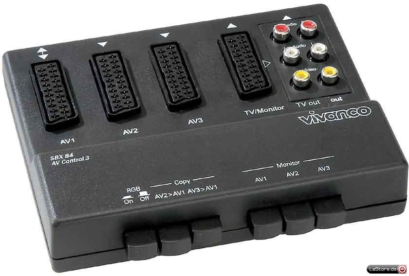 3 Scart Eingänge, 1 Scart sowie 1 Cinch Ausgang